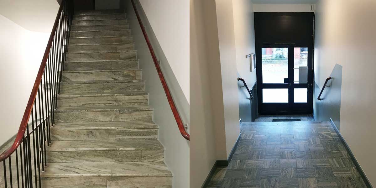 Entréplan och ytterligare fyra våningsplan. Hiss.