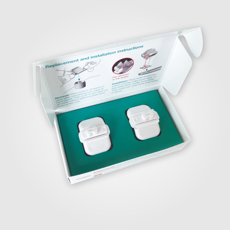 Ta hand om ditt husdjurs munhälsa hemma. Detta paket innehåller 2 st. 3-sidiga ersättningsborsthuvuden.